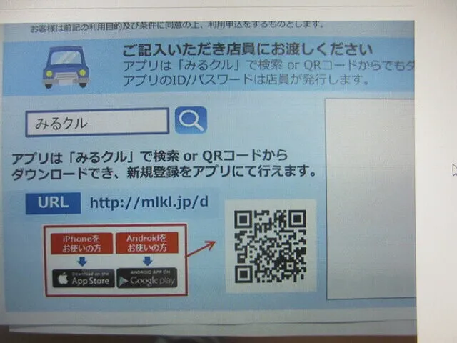 お店のカウンターでふと目に入るこの案内、スマホ片手に「みるクル」を検索するだけで、車情報がすぐ手元に届く時代になったんだなと感じます。