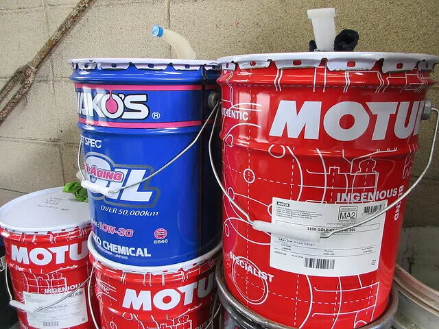 壁際に並ぶオイル缶が、普段の作業場の空気をそのまま