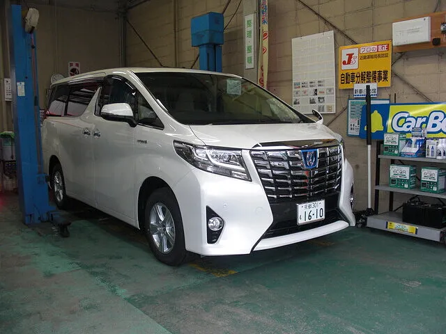 ピカピカのミニバンがリフトの下で静かに佇んでいるこの光景、